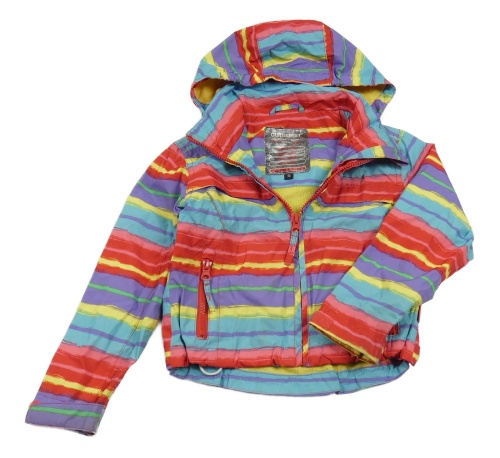 Barevná pruhovaná šusťáková jarní bunda s kapucí