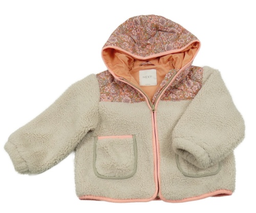 Béžovo-oranžová huňato/šusťáková podšitá bunda s kapucí Next