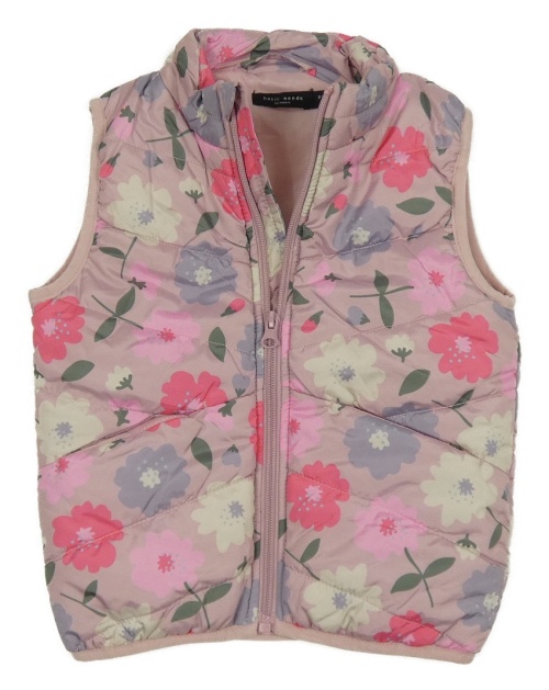 Světlerůžová prošívaná šusťáková zateplená vesta s květy name it.