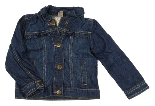 Tmavomodrá riflová bunda s volánky a límečkem Tu