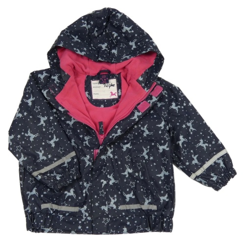 Tmavomodrá nepromokavá zateplená bunda s jednorožci a kapucí Kiki&Koko