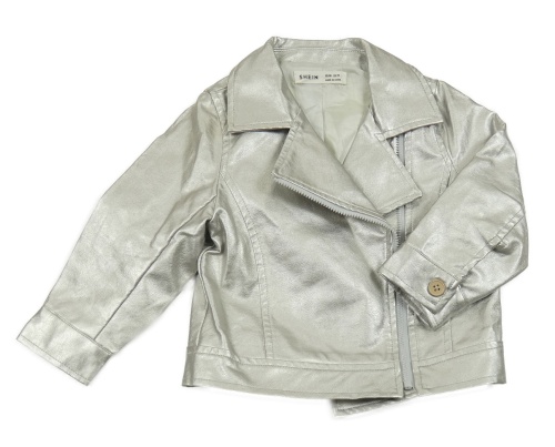 Stříbrný koženkový jarní křivák s límečkem SHEIN