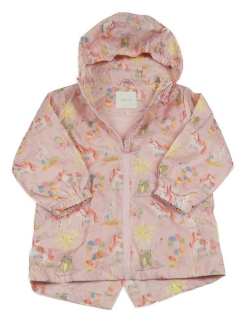 Světlerůžová šusťáková jarní bunda s obrázky a kapucí Next