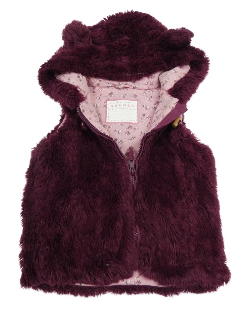 Vínová kožešinová podšitá vesta s kapucí Nutmeg