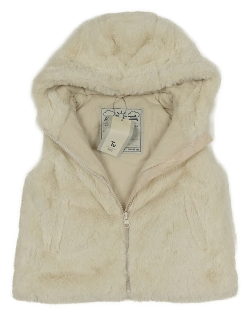 Nové - smetanová kožešinová podšitá vesta s kapucí Tu