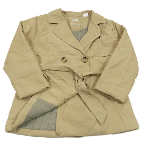 Béžový šusťákový podšitý kabát s páskem Zara