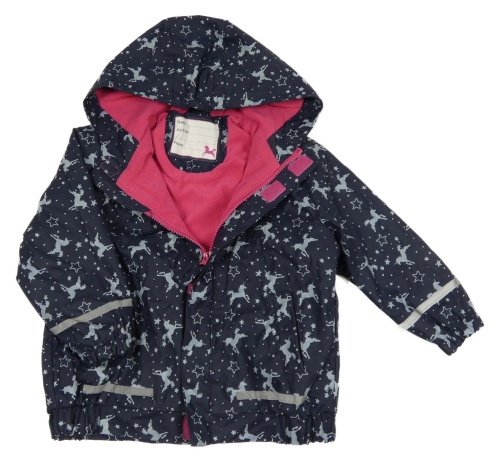 Tmavomodrá nepromokavá jarní bunda s jednorožci a kapucí Kiki&Koko