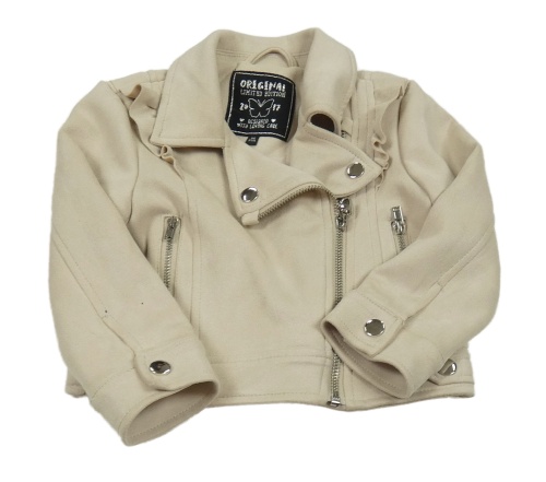 Světlebéžový semišový jarní křivák s volánky a límečkem C&A