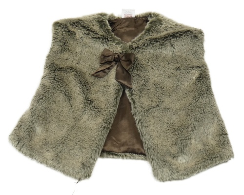 Šedo-smetanová kožešinová podšitá vesta s mašlí miniclub