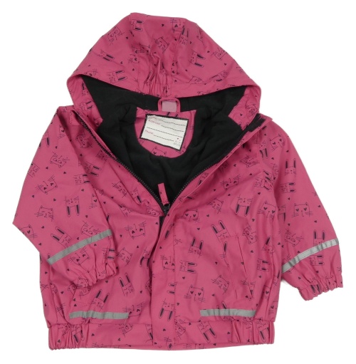 Tmavorůžová nepromokavá jarní bunda s kočičkami a zajíčky a kapucí Kiki&Koko