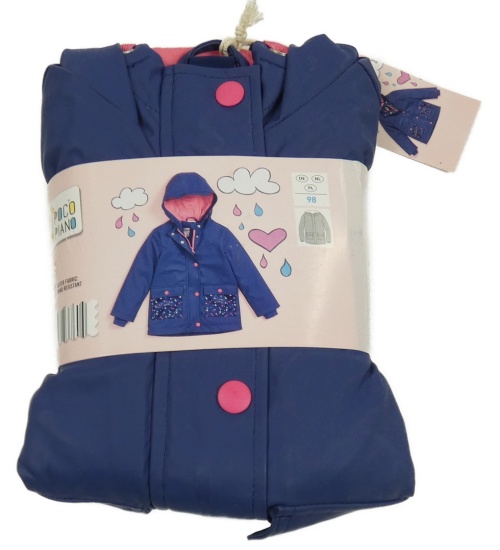 Nové - Modrá nepromokavá jarní bunda se srdíčky a kapucí Pocopiano
