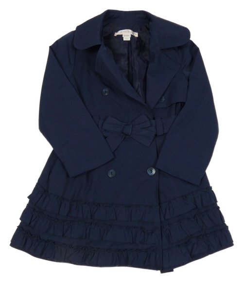 Tmavomodrý šusťákový jarní kabát s volánky a páskem