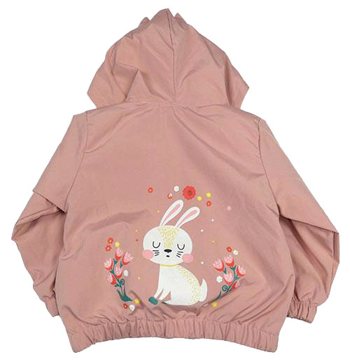 Růžová šusťáková jarní bunda s králíkem a kapucí