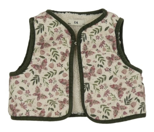 Bílo-olivová sametová zateplená vesta s motýly C&A