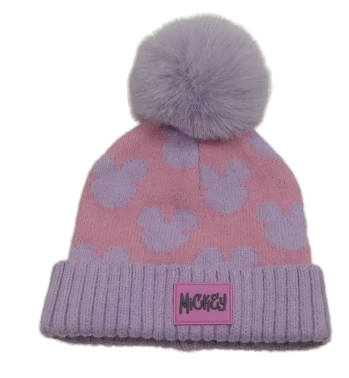 Lila-růžová čepice s Mickeym a bambulí Primark