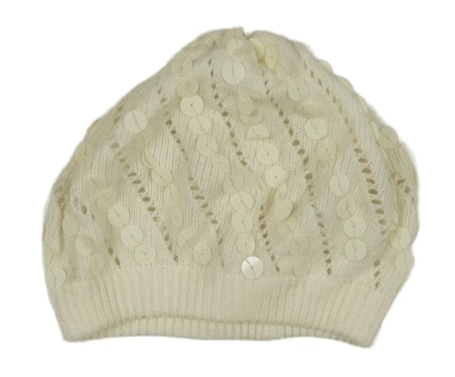 Smetanová pletená čepice s flitry a dirkovaným vzorem