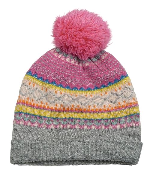 Šedo-světlerůžovo-růžová vzorovaná čepice s bambulí Next