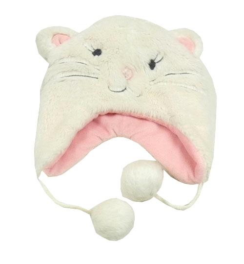 Smetanová kožešinová čepice s oušky - kočka Dopodopo