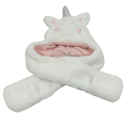 Bílá chlupatá čepice s jednorožcem a šálou Lily & Dan