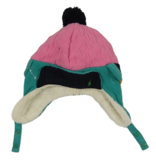 Růžovo-zeleno-tmavomodrá fleecová zateplená ušanka