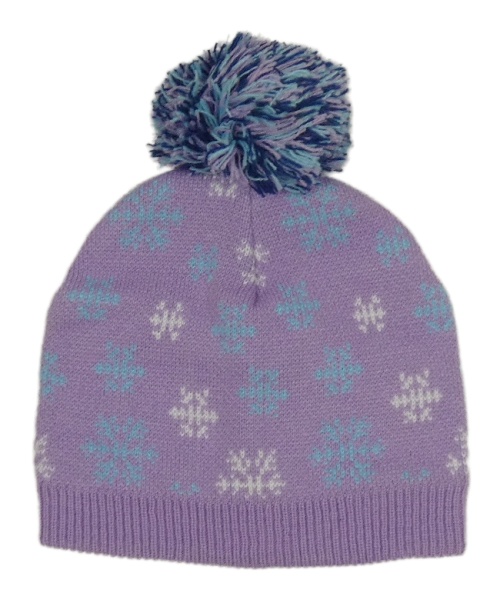 Levandulová funkční pletená čepice s vločkami a bambulí crane