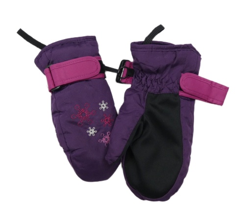 Fialové šusťákové zimní palcové funkční rukavice s vločkami