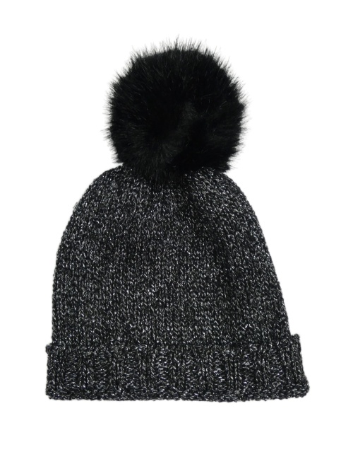 Nové - Černo-stříbrná pletená čepice s bambulí