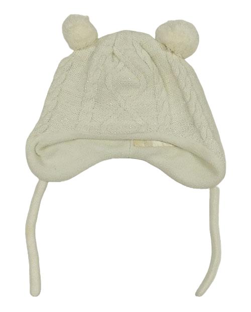 Smetanová třpytivá pletená čepice s bambulemi C&A