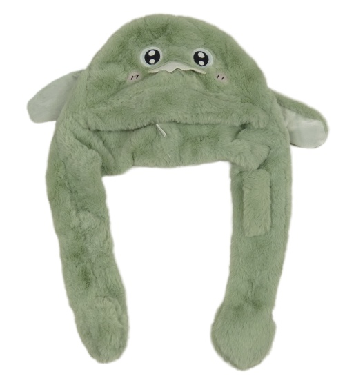 Světlezelená chlupatá čepice s příšerkou
