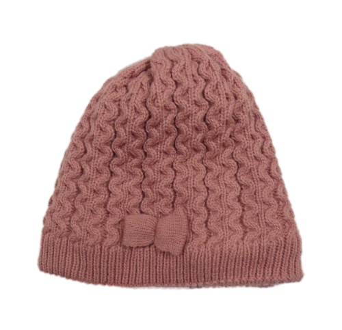 Starorůžová vzorovaná pletená zateplená čepice s mašlí PUSBLU