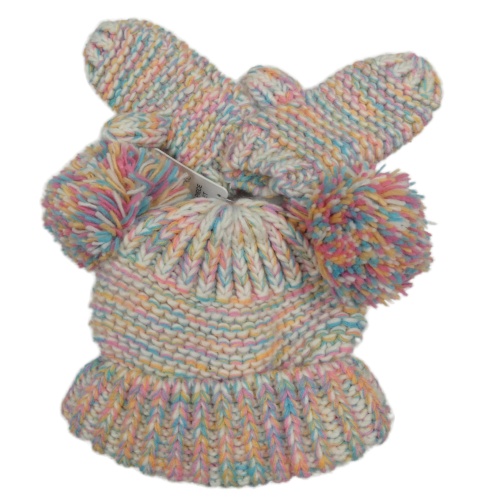 Nové - 2Set - Barevná melírovaná pletená čepice s bambulemi + palcové rukavice Next
