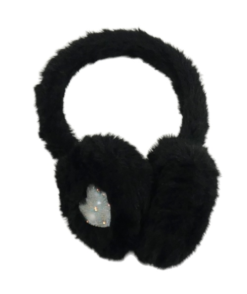 Černé kožešinové klapky na uši se srdíčky s třpytkami