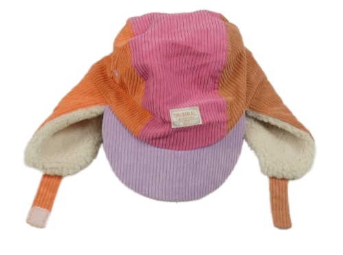 Růžovo-lososovo-skořicovo-levandulová manšestrová zateplená beranice s kšiltem Next