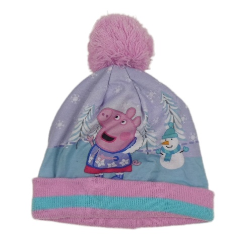 Světlefialovo/světlemodrá čepice s Peppa Pig a bambulí