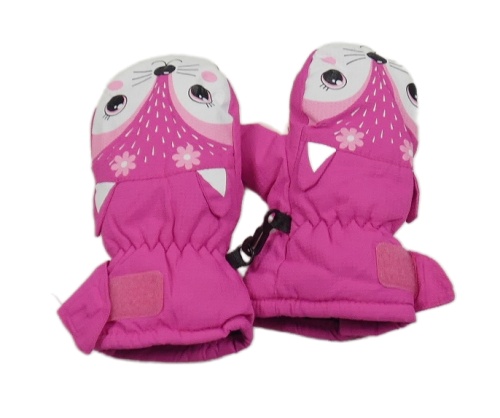 Fuchsiové kostkované šusťákové zimní palcové rukavice s čumáčkem NEVICA