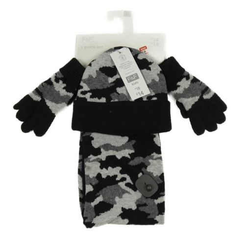 Nové - 3set - Černo-šedá army čepice + šála + rukavice F&F