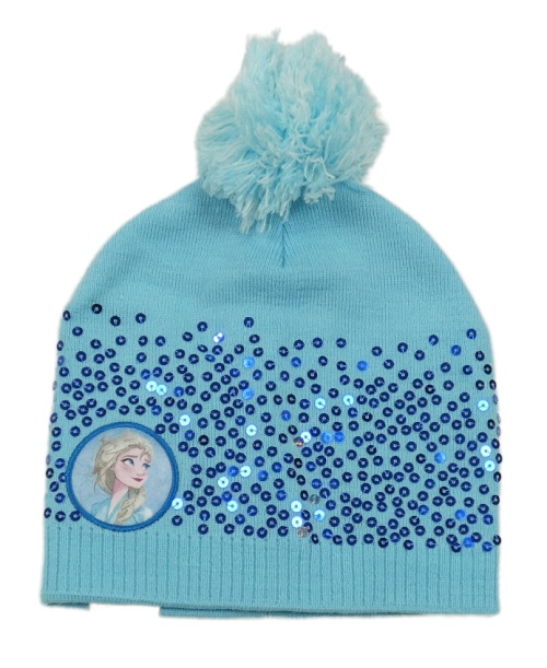 Azurová pletená čepice s Elsou a flitry a bambulí Disney