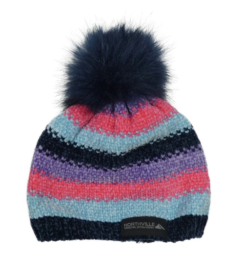 Pruhovaná melírovaná žinylková čepice s nášivkou a bambulí C&A