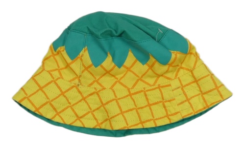 Růžovo-modrozelený plátěný oboustranný klobouk - jahůdka/ananas