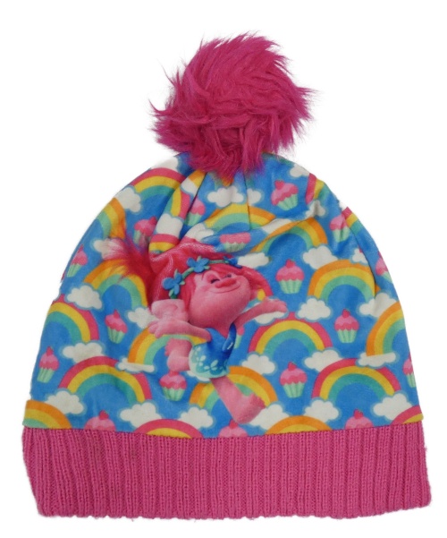 Modro-růžová sametovo/pletená čepice s duhami a Trolls Nutmeg