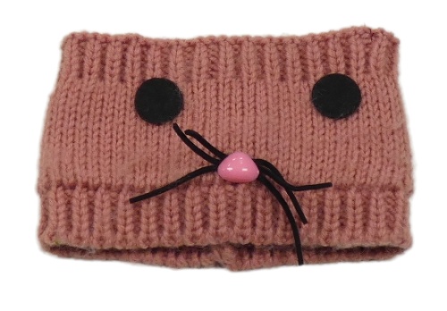 Růžová pletená čelenka s čumákem