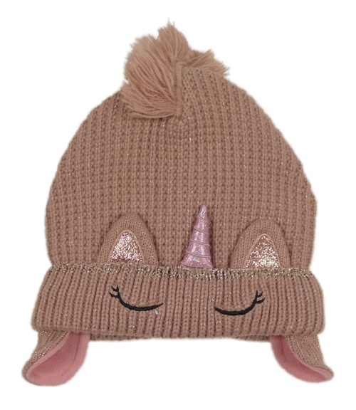 Starorůžová pletená podšitá čepice s jednorožcem Dunnes