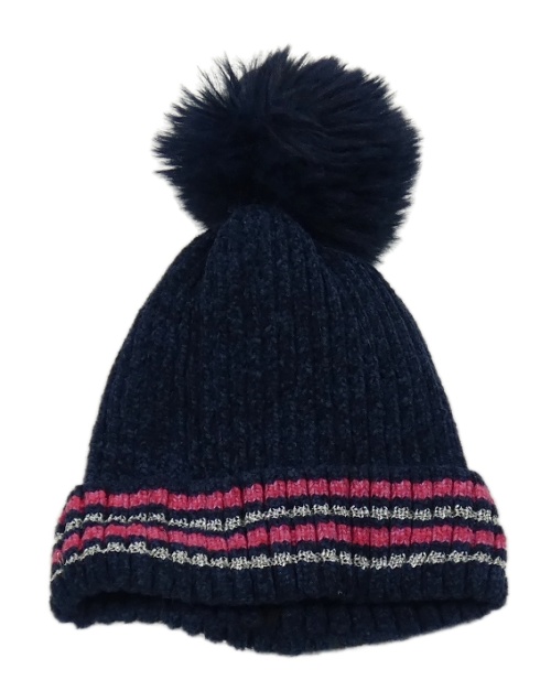 Tmavomodrá čepice s proužky a bambulí