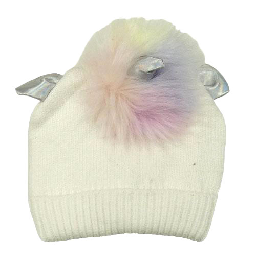 Smetanová čepice s rohem a kožešinou - jednorožec