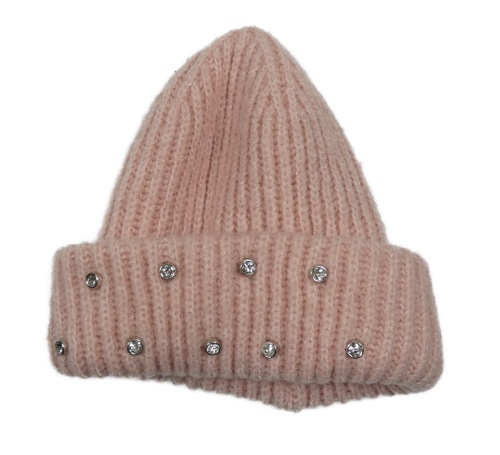 Růžová pletená čepice s kamínky