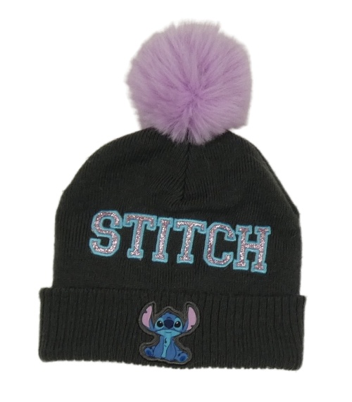 Tmavošedá pletená čepice se Stitchem a bambulí