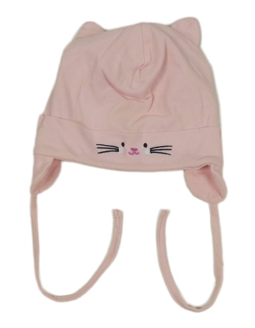 Světlerůžová bavlněná čepice s kočkou