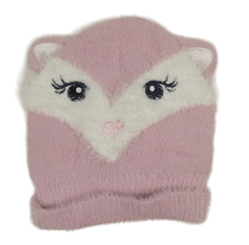 Světlerůžovo-bílá chlupatá pletená čepice s obličejem Dopodopo