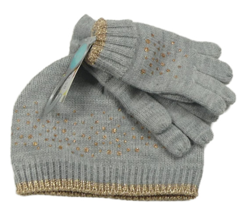 Nový - 2Set - Šedo-zlatá melírovaná čepice s puntíky + prstové rukavice Matalan