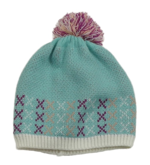 Zelená vzorovaná pletená čepice s bambulí Crivit